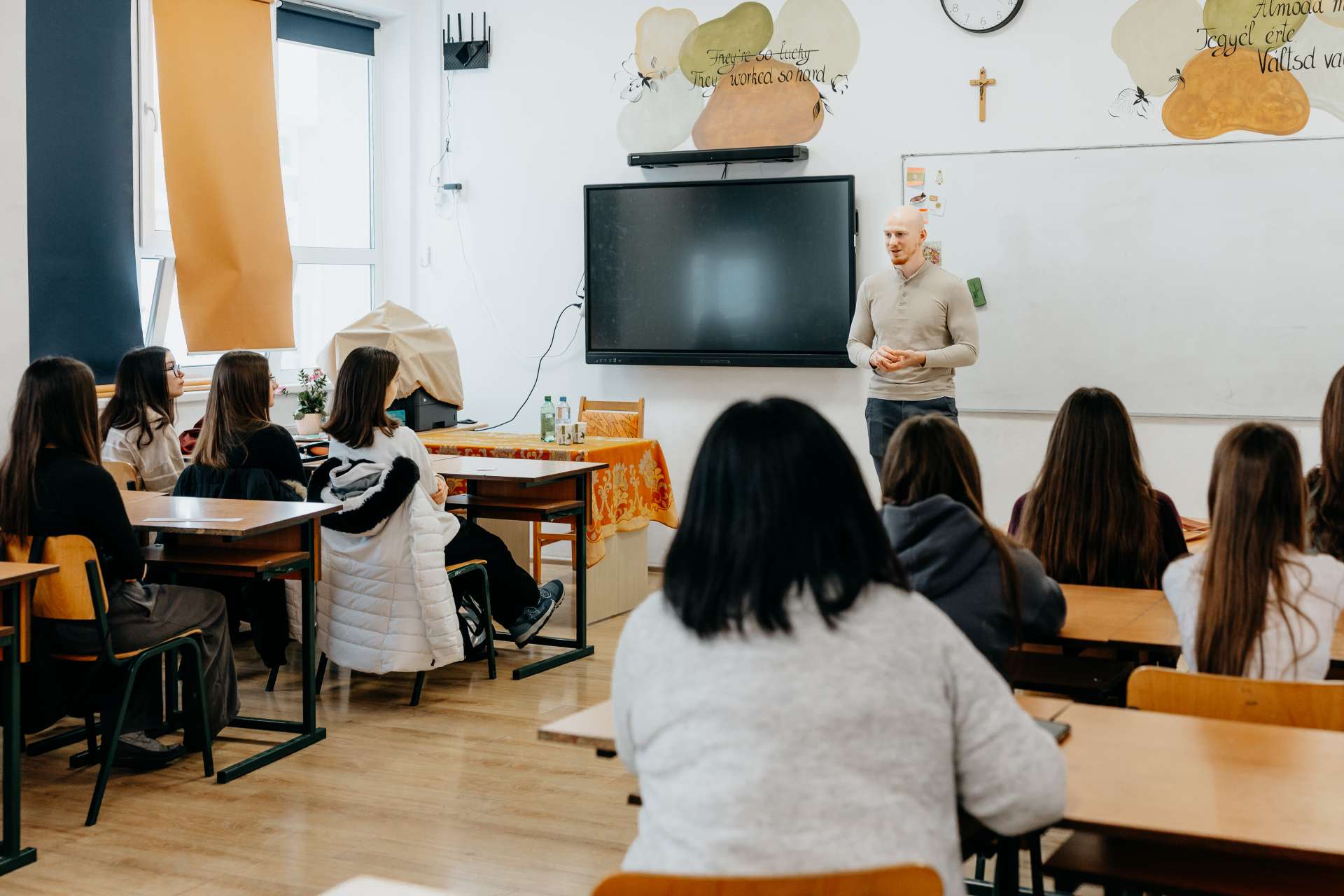 A rendezvényen meghívott vendégeink saját életútjukról és hivatásukról meséltek a tanulóknak: