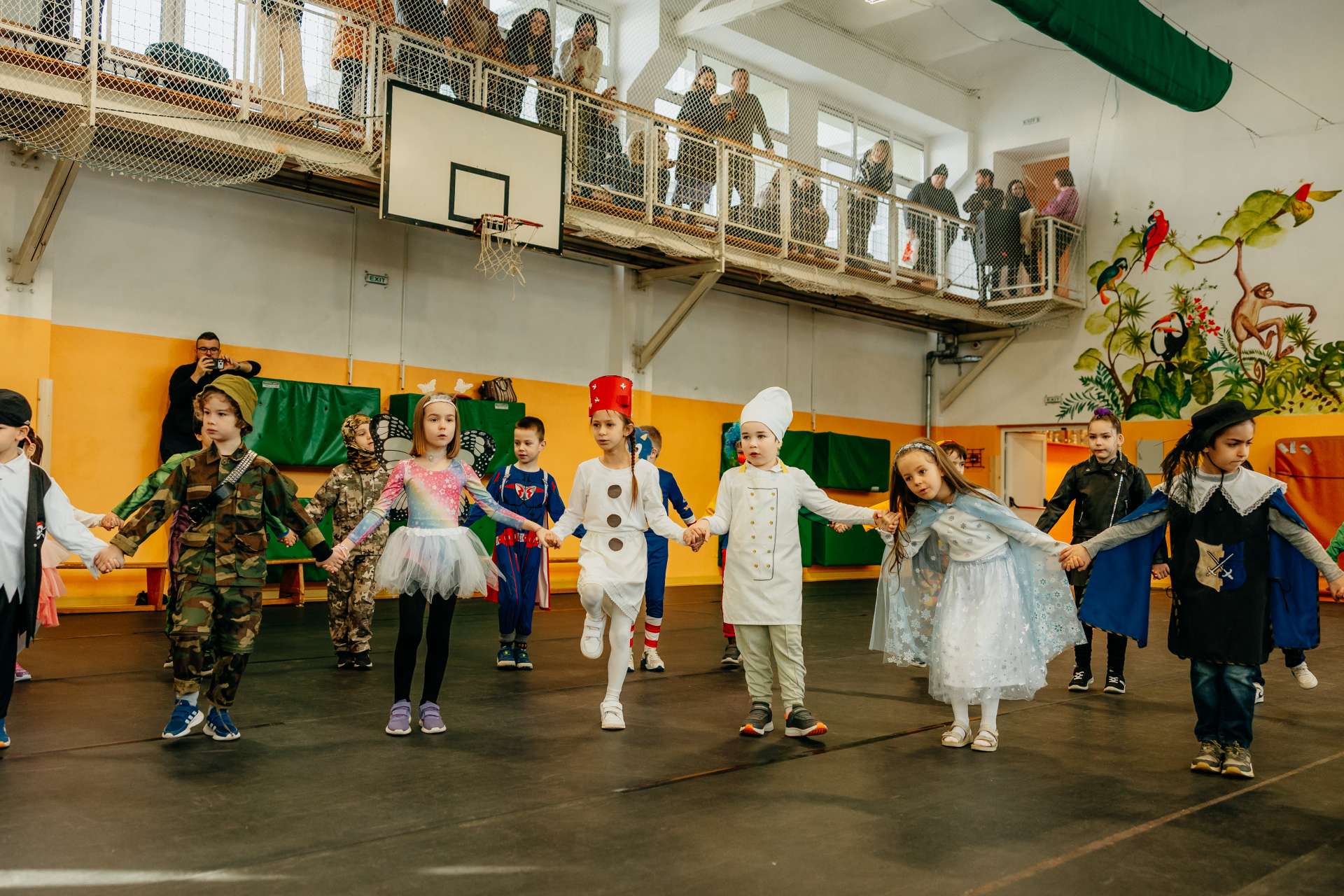 Iskolánkban vidám hangulatban tartottuk meg kisdiákjaink farsangi bálját. Szebbnél szebb, kreatív jelmezekben vonultak fel a gyerekek, miközben Ádám Kati néni vezetésével tánccal búcsúztattuk a farsangot. A mulatság tele volt nevetéssel és jókedvvel, igazi ünnepi hangulatot varázsolva az iskolába.
