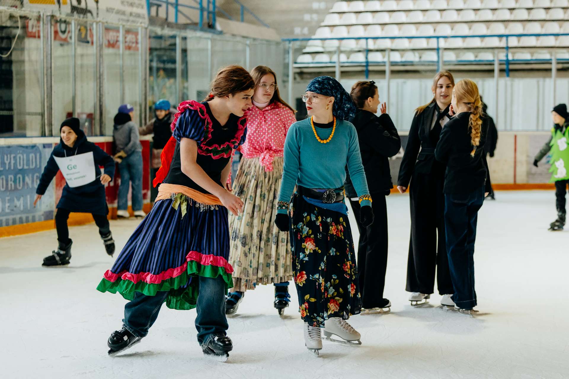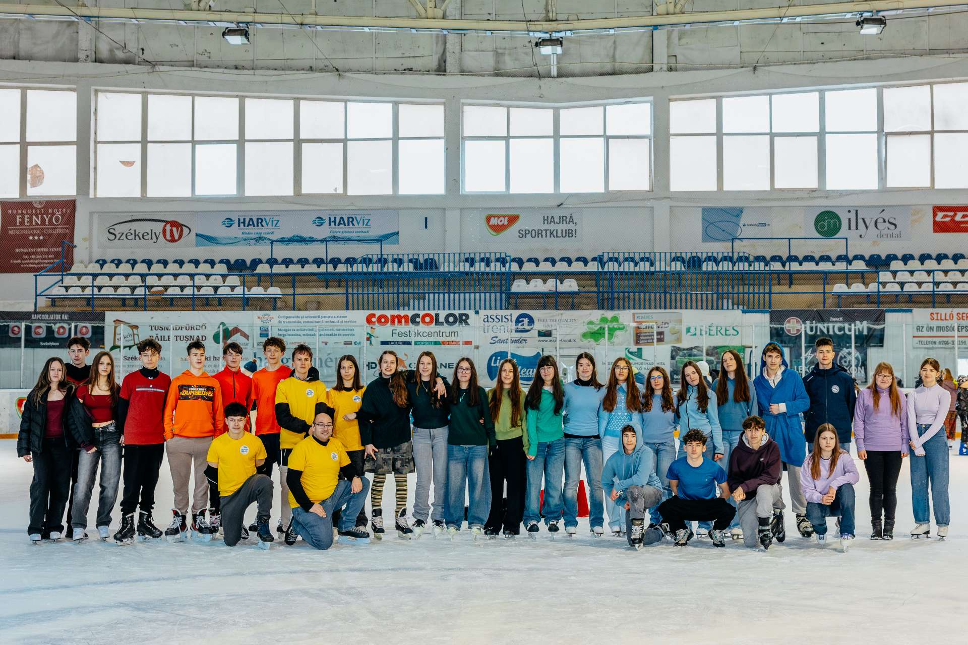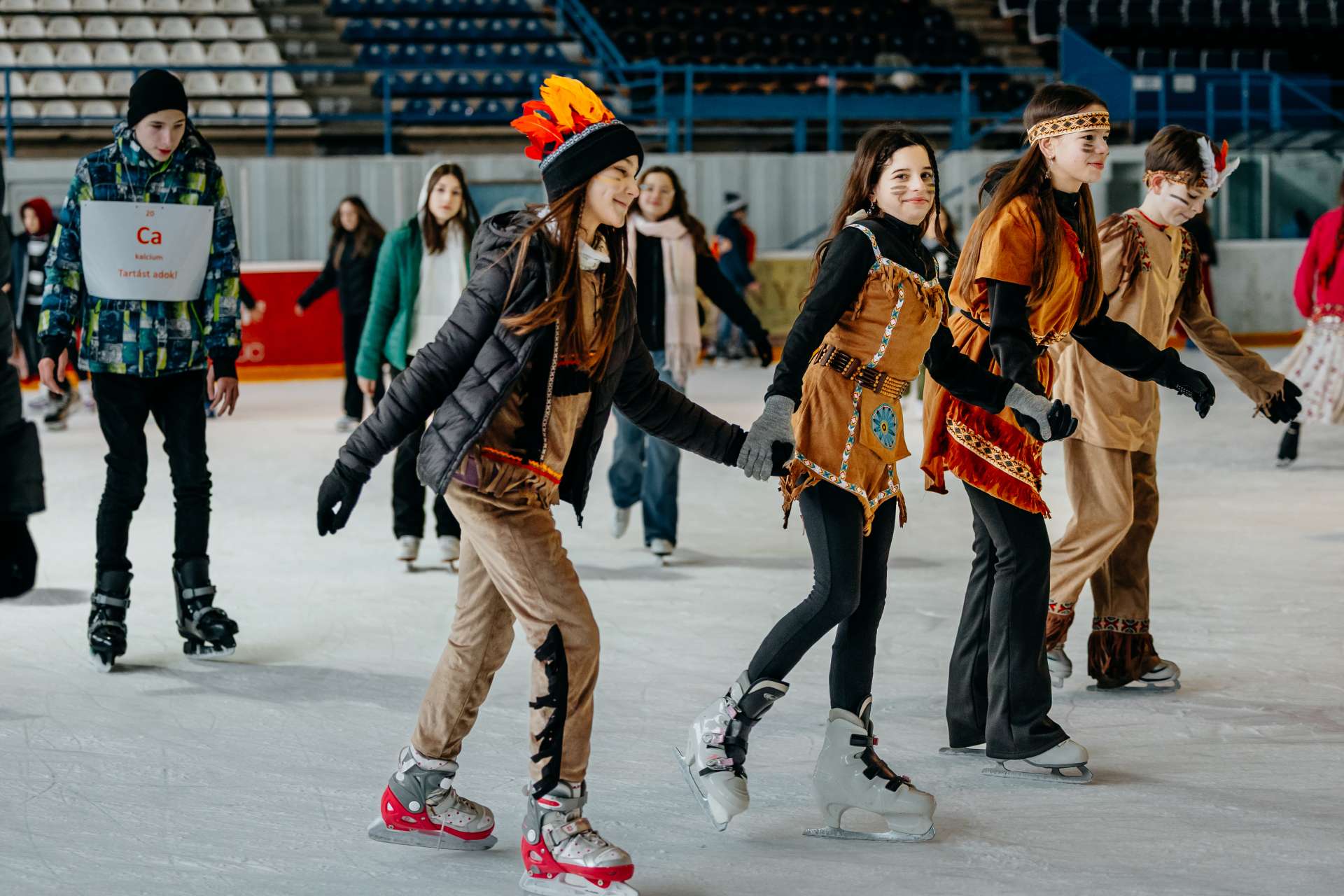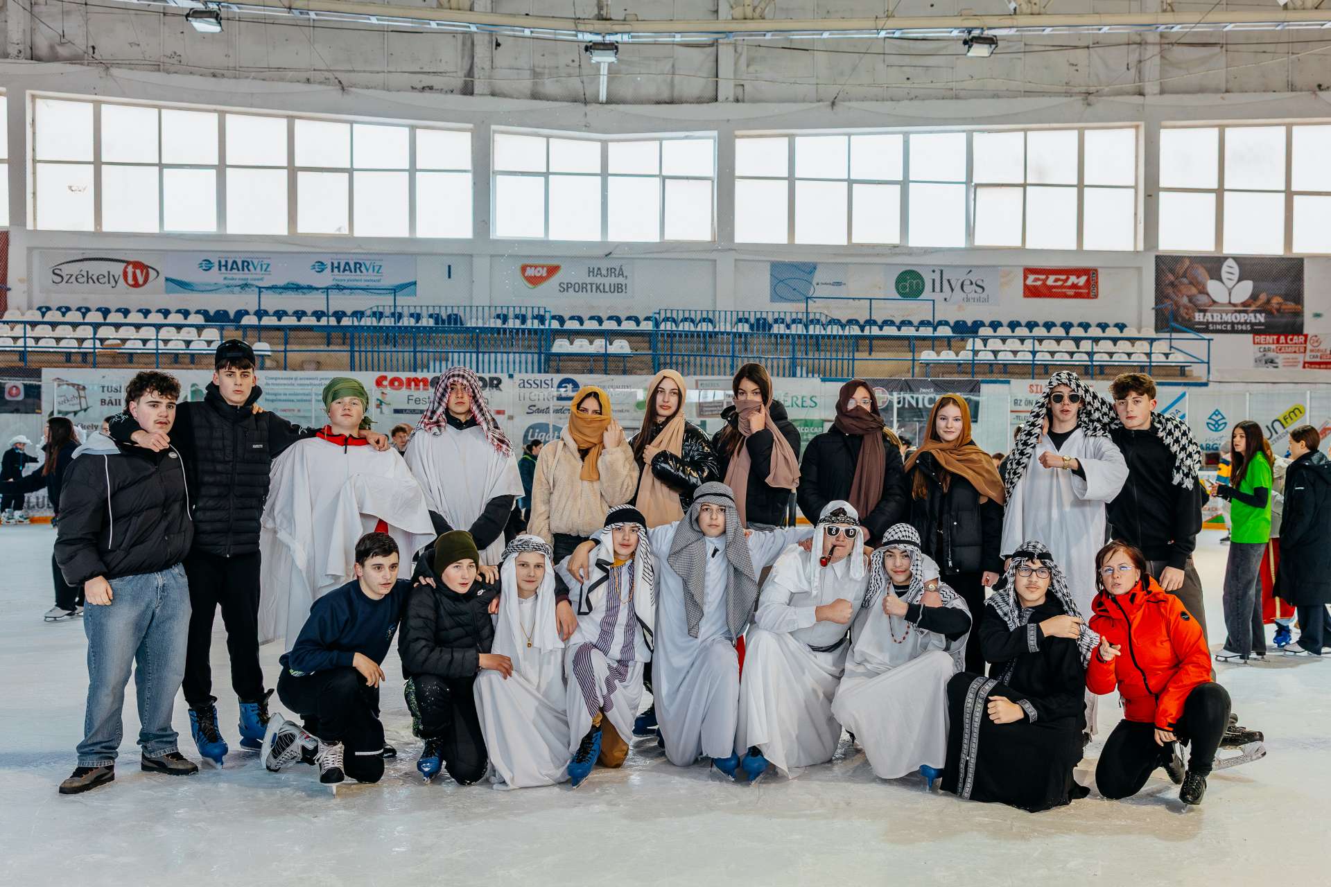 Megtartottuk gimnazista diákjaink farsangi Jégkarneválját a Vákár Lajos Műjégpályán. Évek óta hagyomány, hogy az osztályok tematikusan öltöznek fel, idén sem volt ez másként. A jégpálya vidám hangulattal és színes jelmezekkel telt meg, a legkreatívabb osztályok eredményét pedig a vakáció után hirdetjük ki.