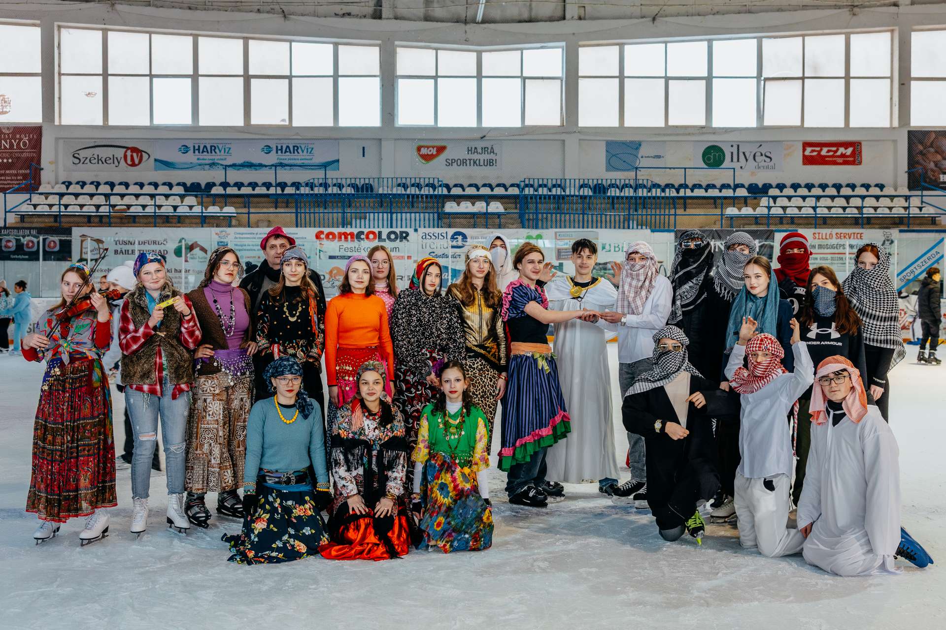 Színes jelmezek és vidámság a gimnazisták Jégkarneválján