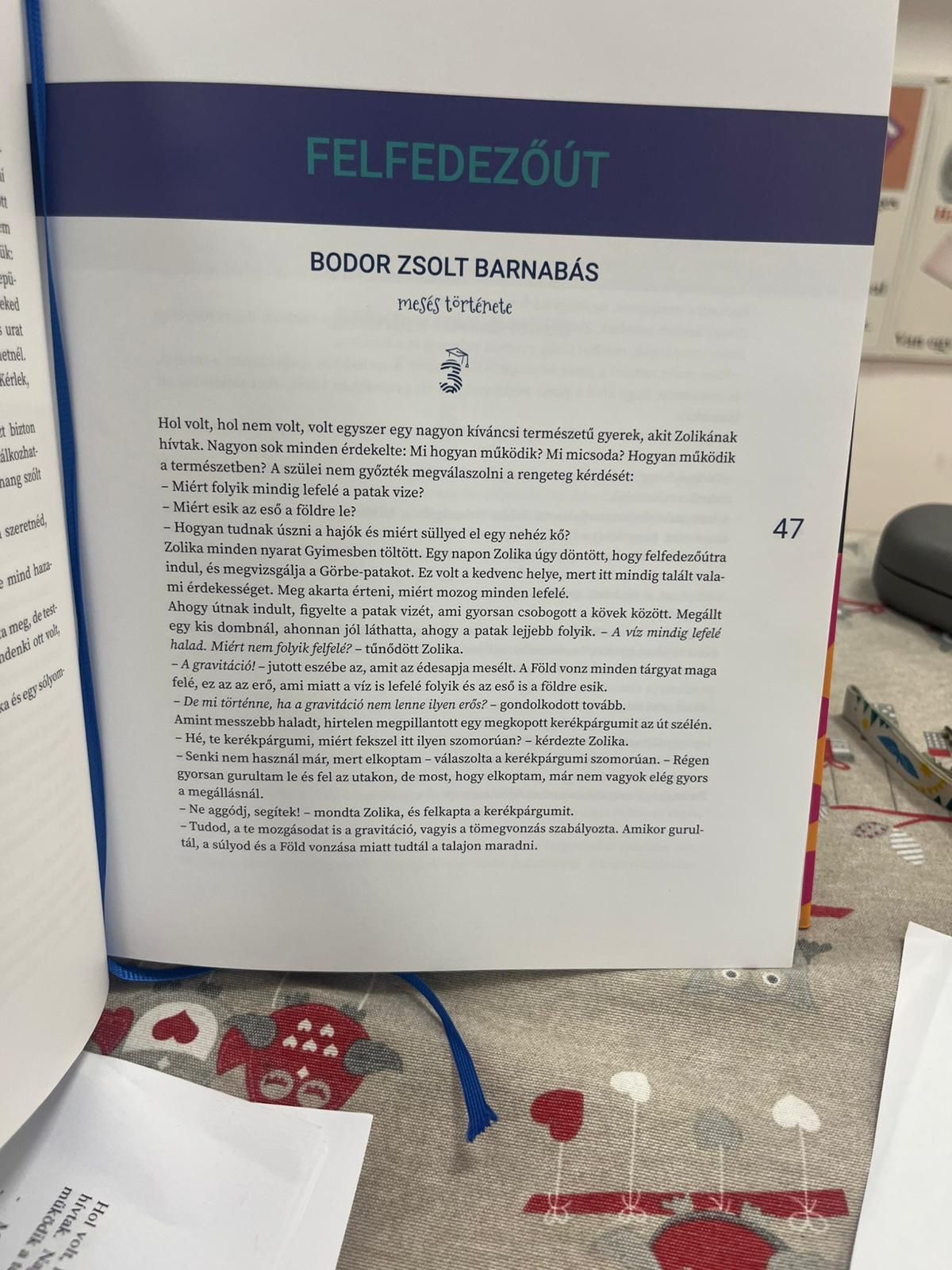 A magyar népmese napját idén egy különleges eseménnyel ünnepeltük iskolánkban. Egy olyan könyv bemutatására került sor, amely idén jelent meg a Richter TETT-mesepályázat elbírálása után. A hirdetésben olyan történeteket vártak, amelyek fő témája a természettudományok világából ihletődik. Bodor Zsolt Barnabás IV. A osztályos tanulónak sikerült olyan mesét írnia a gravitációról, hogy az nyertes lett, és megjelent a kötetben.