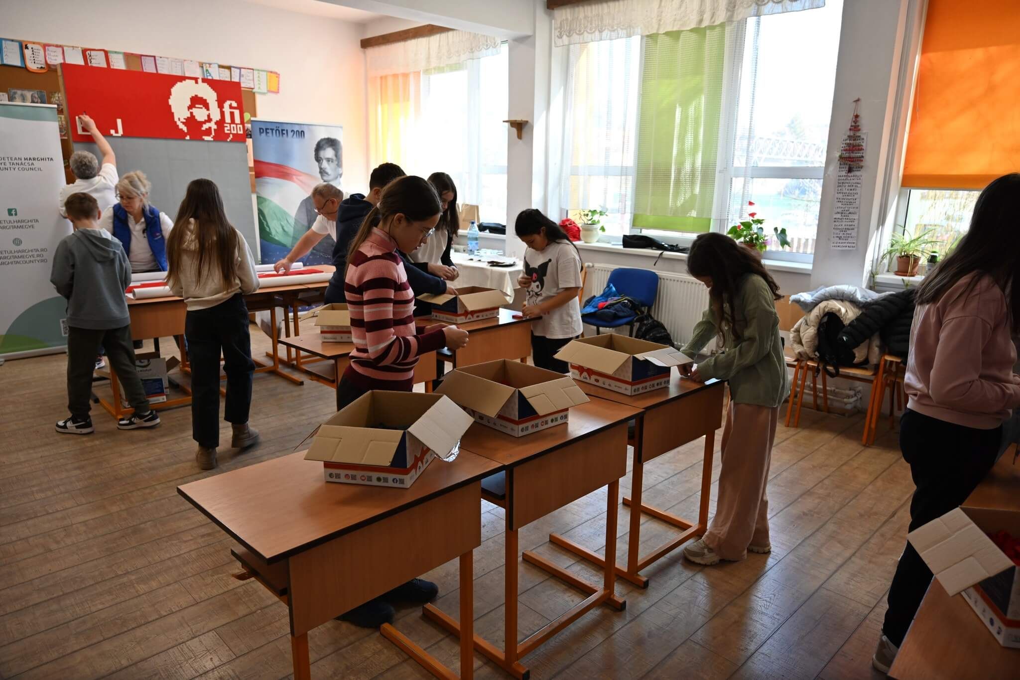 Március 7-én, pénteken Iskolánk tanulóinak Hargita Megye Tanácsa lehetőséget kínált, hogy részt vegyenek a Bács-Kiskun megyétől ajándékba kapott Petőfi Sándor óriás LEGO összerakásában és egy nagyszerű VR szemüveges élményfoglalkozáson.