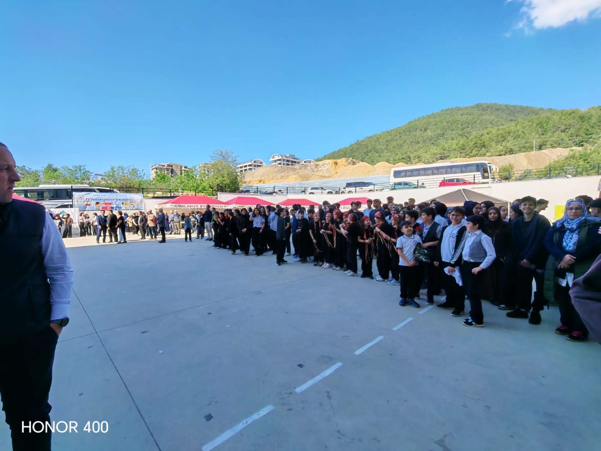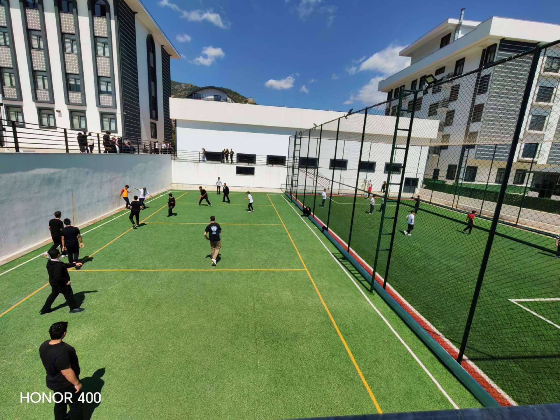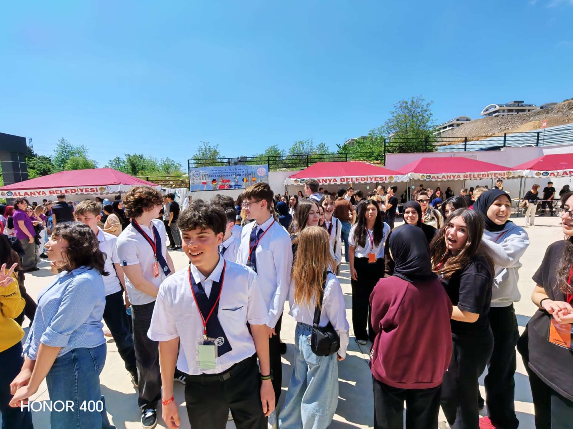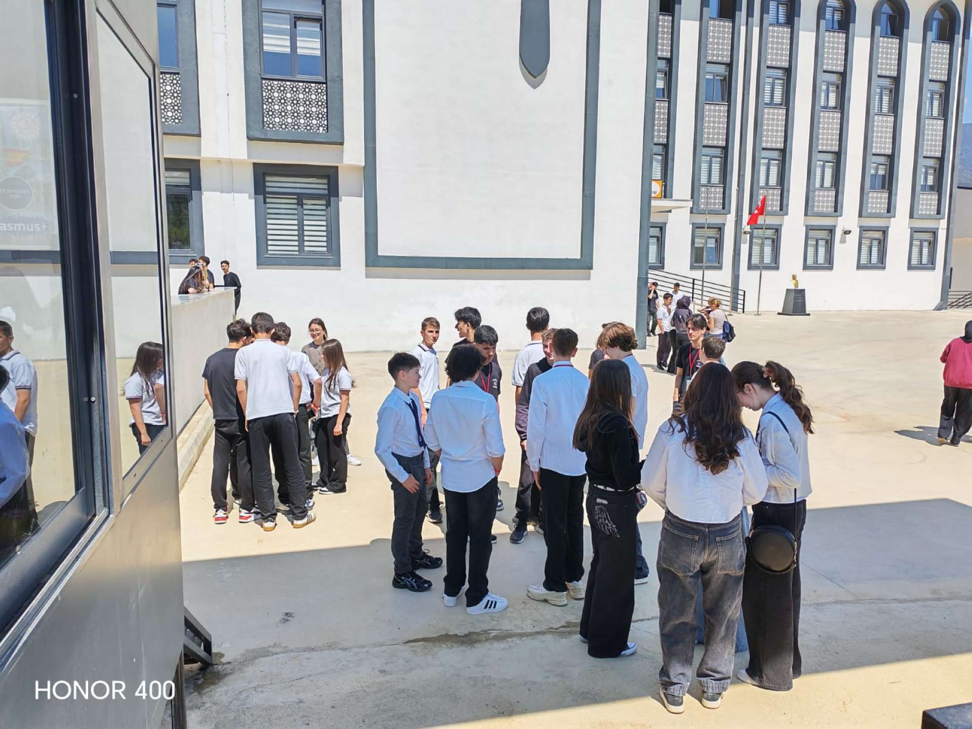 Az iskola hatalmas és gyönyörű volt. A kapun belépve szívélyes fogadtatásban részesültünk, majd egy óriási előadóterembe vezettek. Tradicionális előadásokat láthattunk: táncokat, zenét, verseket. Néhány óra után azonban hirtelen elment az áram az egész környéken, így az előadás félbeszakadt. Ezután különleges török ételekkel kínáltak minket, majd beszélgetni kezdtünk az ottani diákokkal és más országokból érkezett csoportokkal. Mindenki nagyon barátságos volt, sokat táncoltunk velük, és új barátságokat kötöttünk. Eleinte furcsa volt angolul beszélni, de hamar belejöttünk, és a végére már teljesen természetesen ment.