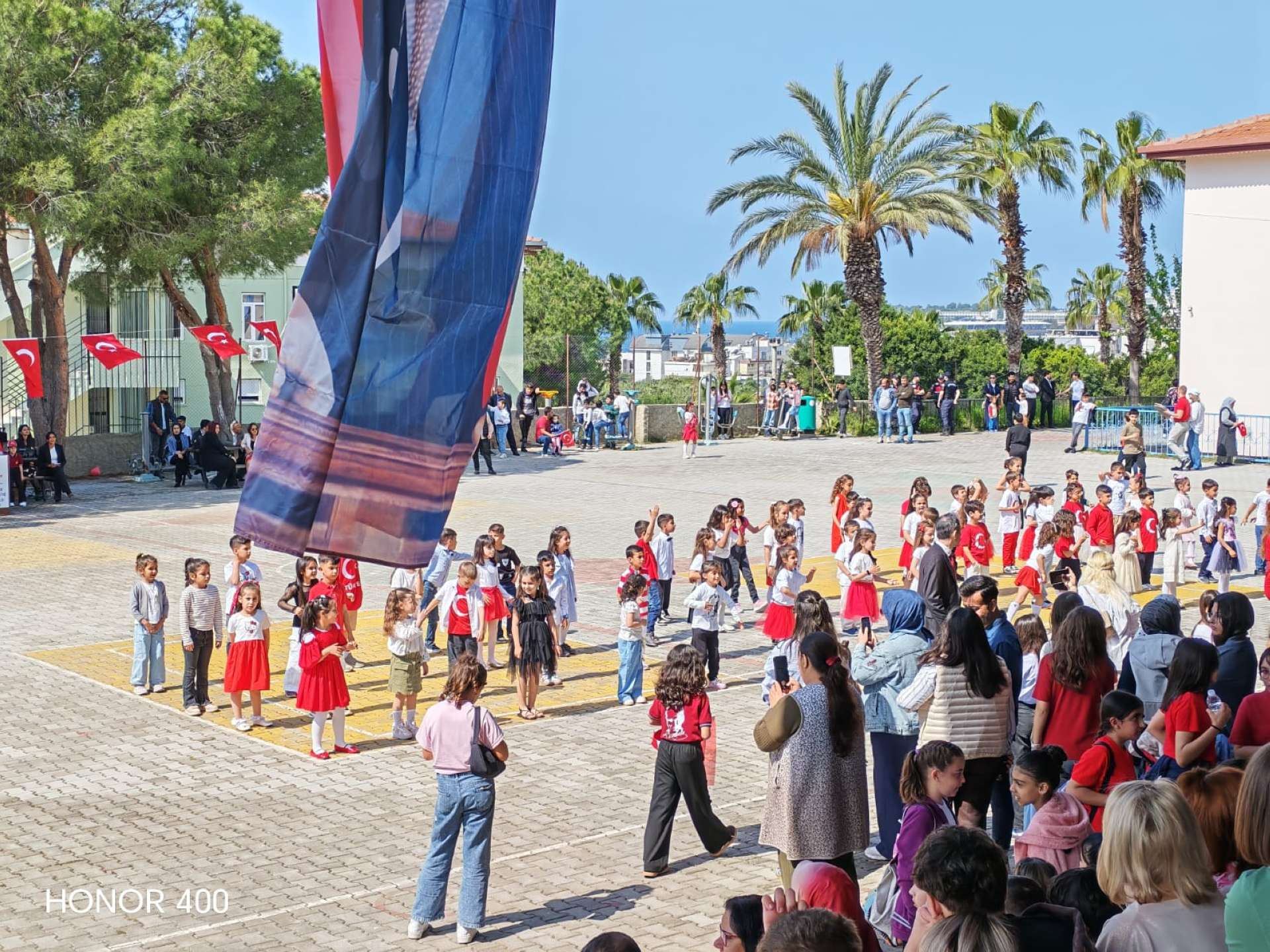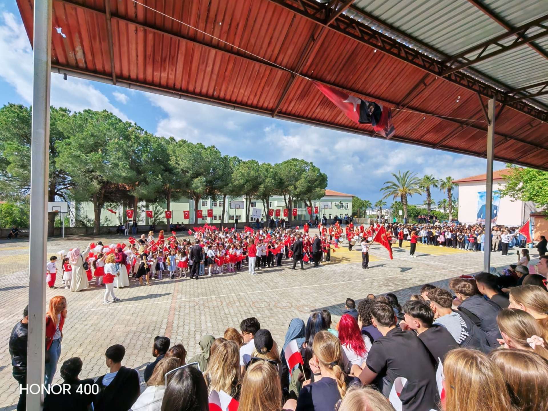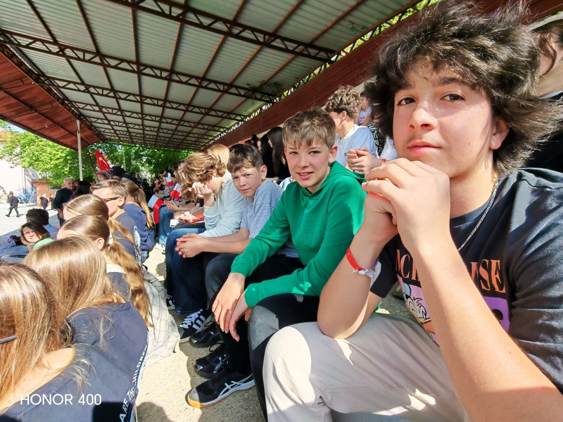 Kilenc órakor már úton voltunk a szervezett programra, a buszban vidáman beszélgettünk, miközben kíváncsian vártuk, mi fog történni. Az iskolába érkezve ünnepi hangulat fogadott: a diákok előadása Törökország nemzeti függetlenségének napjáról és a gyereknapról szólt. Megható volt látni, mennyire büszkék a hagyományaikra, és mi is átérezhettük az ünnep jelentőségét.