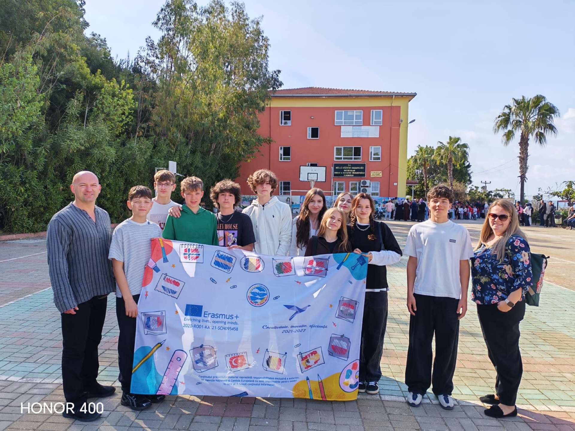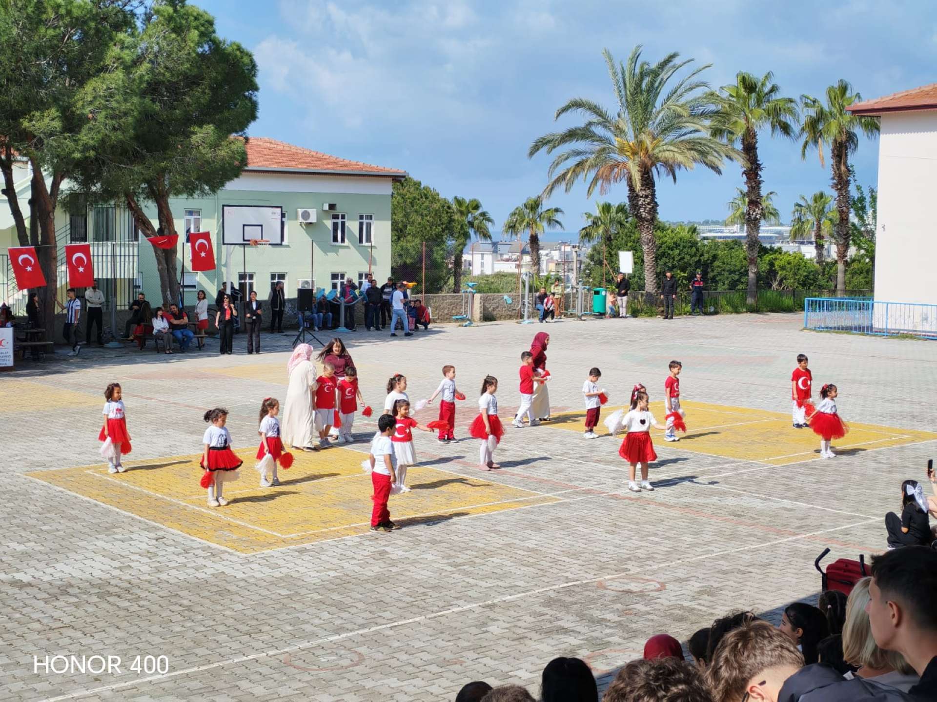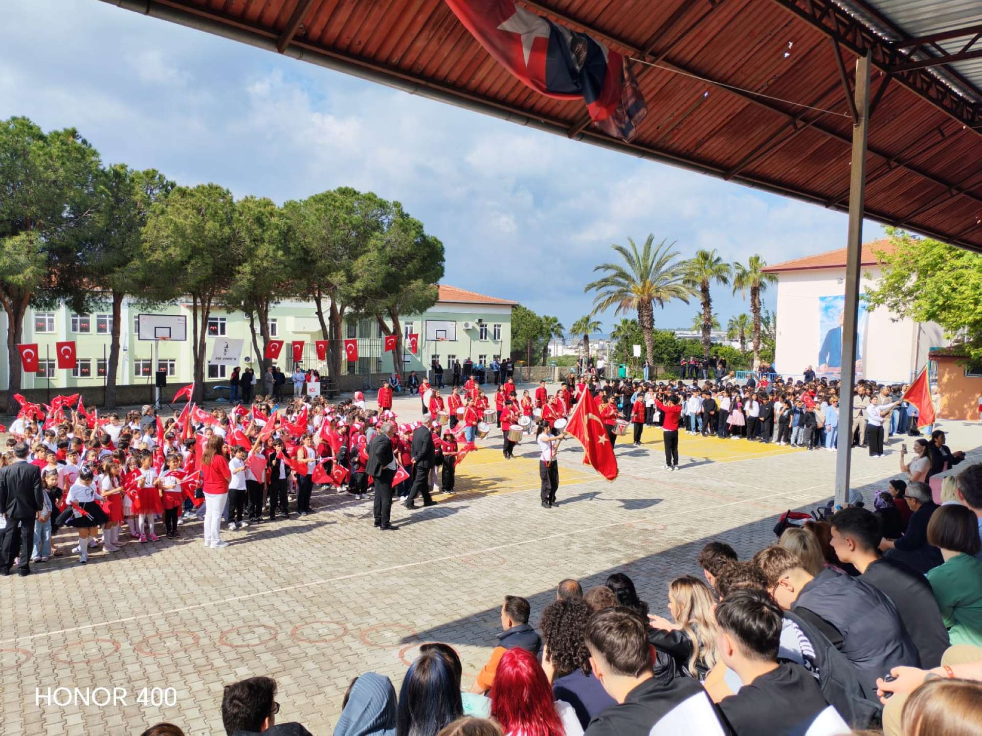Kilenc órakor már úton voltunk a szervezett programra, a buszban vidáman beszélgettünk, miközben kíváncsian vártuk, mi fog történni. Az iskolába érkezve ünnepi hangulat fogadott: a diákok előadása Törökország nemzeti függetlenségének napjáról és a gyereknapról szólt. Megható volt látni, mennyire büszkék a hagyományaikra, és mi is átérezhettük az ünnep jelentőségét.